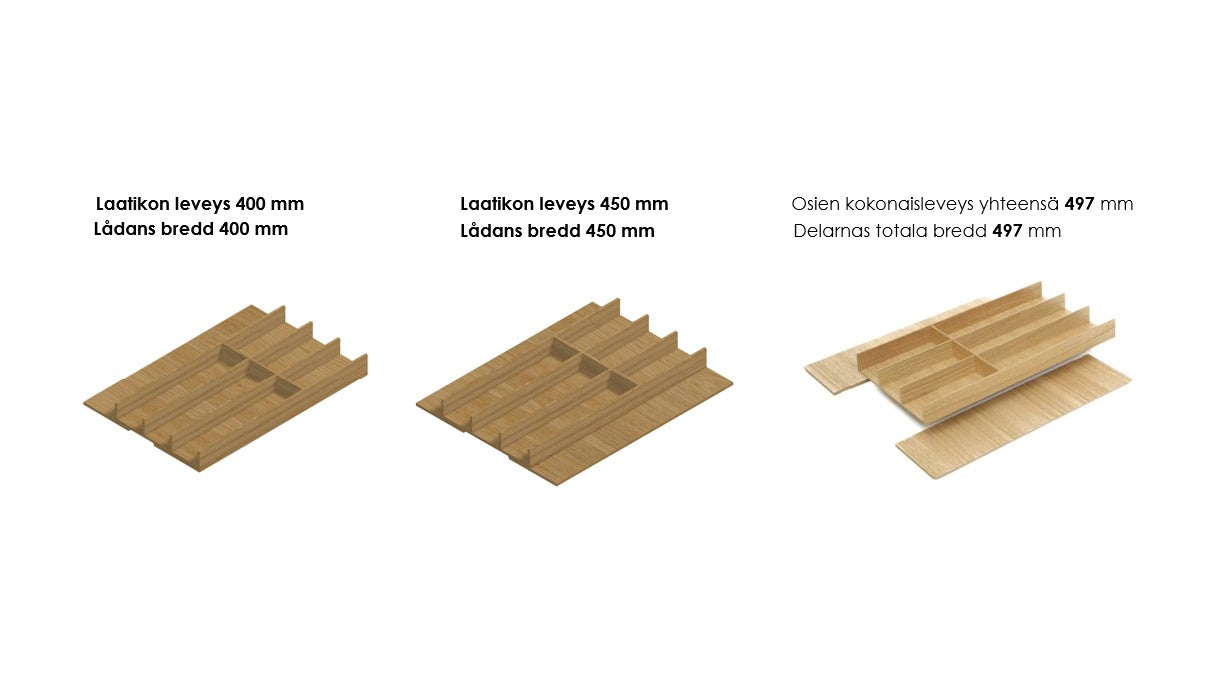 Besticklådan passar till 400-450 mm breda och 500 mm djupa lådor.