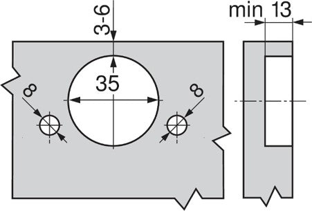 Om du vill byta ut dina gamla gångjärn till dämpande gångjärn bör du kontrollera i produktbeskrivningen eller sprängskissen att borrhålen i ditt skåp passar ihop med gångjärnet. De flesta borrhålen för dämpande gångjärn ska vara minst 13 mm. Se till att motstycket på gångjärnet passar att använda tillsammans med det nya gångjärnet. Koderna till motstycken som passar ihop hittar du nedan.