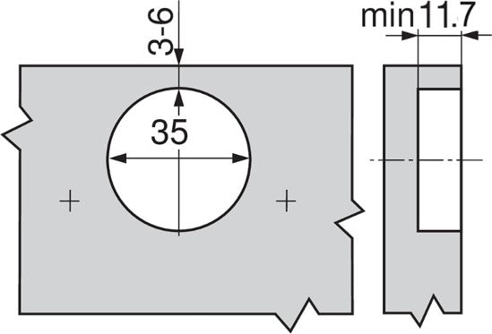 Gångjärnet har en integrerad Blumotion-dämpare. Öppningsvinkelbegränsare 92° 70T7553.09 finns som tillval. De främsta användningsområdena är torkskåp och hörnskåp.