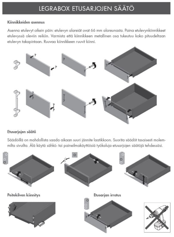 Fästdon för frontserie låg M LEGRABOX-låda. Samma fästdon passar till höger och vänster hörn.