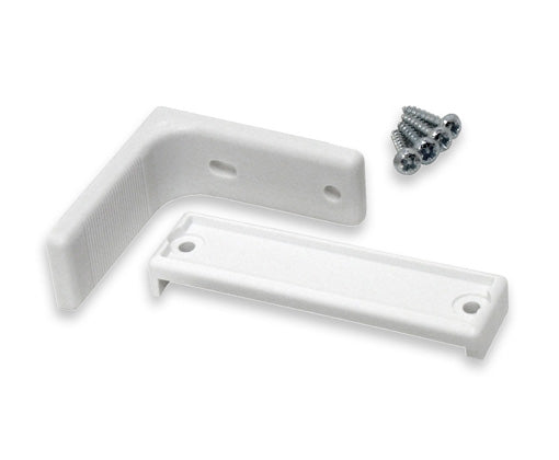 Fäste till täckplatta 2 st. 4 skruvar medföljer. Består av två plastdelar. Låg del i U-modell som fäst på stommen eller väggen. L-formad kildel som fästs i täckplattan. Efter att man har satt fast delarna trycks täckplattan på plats så att den L-formade delen kilas fast i den låga U-formade delen.