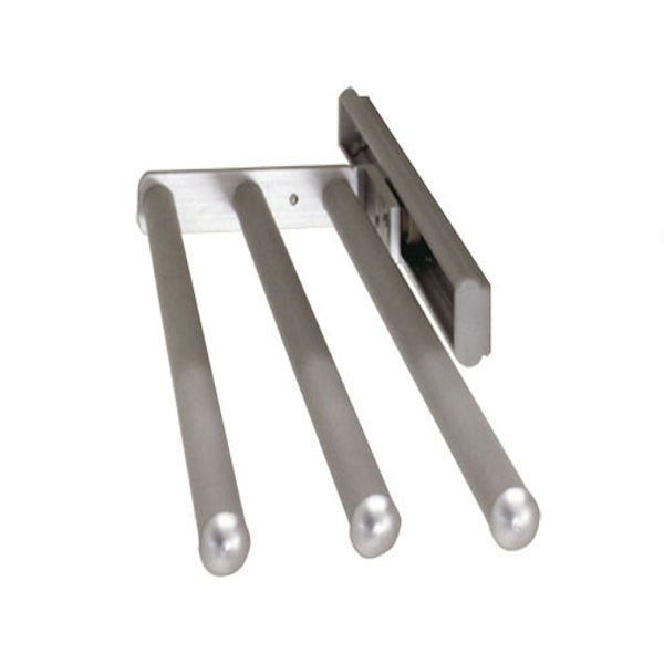 Handduksställ som monteras i skåp. Mekanism monteras i ett 570 mm djupt och minst 200 mm brett skåp. Tack vare de tre utdragbara stängerna är handdukar lättillgängliga.
