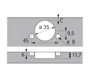 Se till att borrhålet till gångjärnen på skåpet stämmer med måtten som står i produktbeskrivningen för gångjärnen. På vikdörrar kan man inte använda dämpare, för dörrarna måste kunna stängas på grund av rörelsebanan.