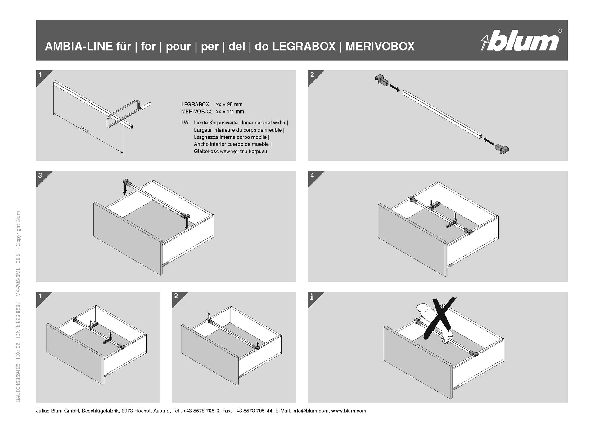 Legrabox Ambia-Line-lådavdelare för 1 200 mm låda. Den kvadratiska rörkonstruktionen kan kapas i önskad längd. Lådavdelaren fästs med två fästdon till lådavdelare. Fästdonen säljs separat (ZC7U10E0).