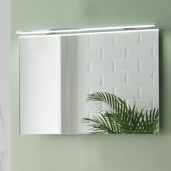 Kromad, 800 mm bred armatur utrustad med S3-arm. Armaturen levereras med ett fäste, så att lampan kan fästas ovanpå ett skåp eller exempelvis bakom en spegel.Om man plockar isär delarna av fästet kan man även fästa armaturen på en spegel på max. 6mm tjock.