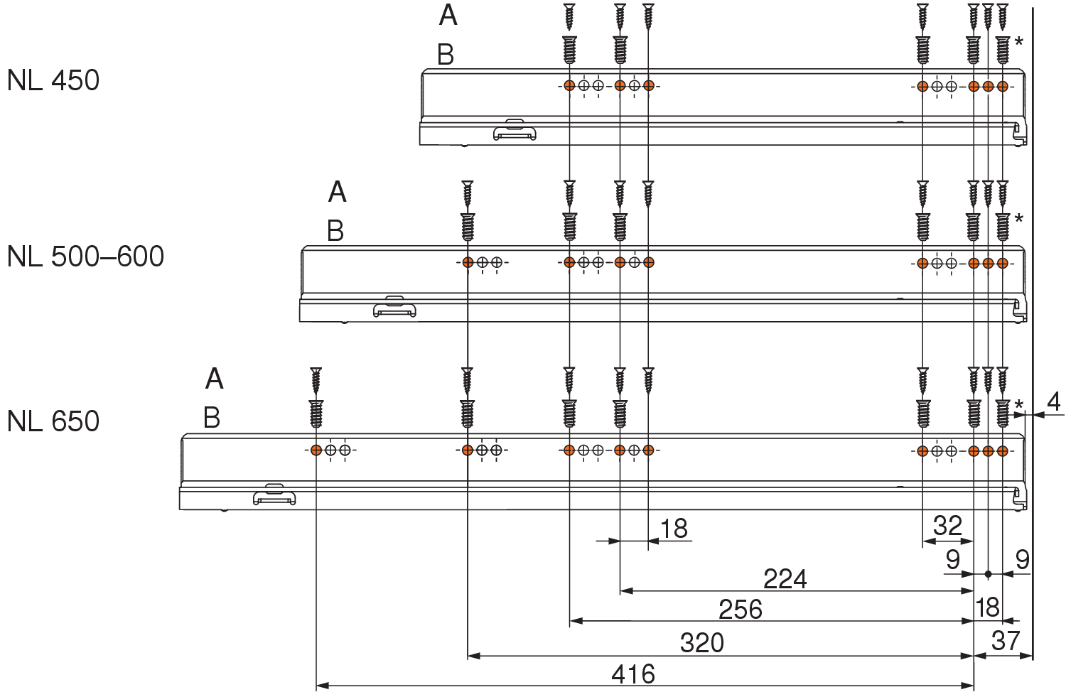 LEGRABOX Blumotion-glidskena höger 650 mm 70kg