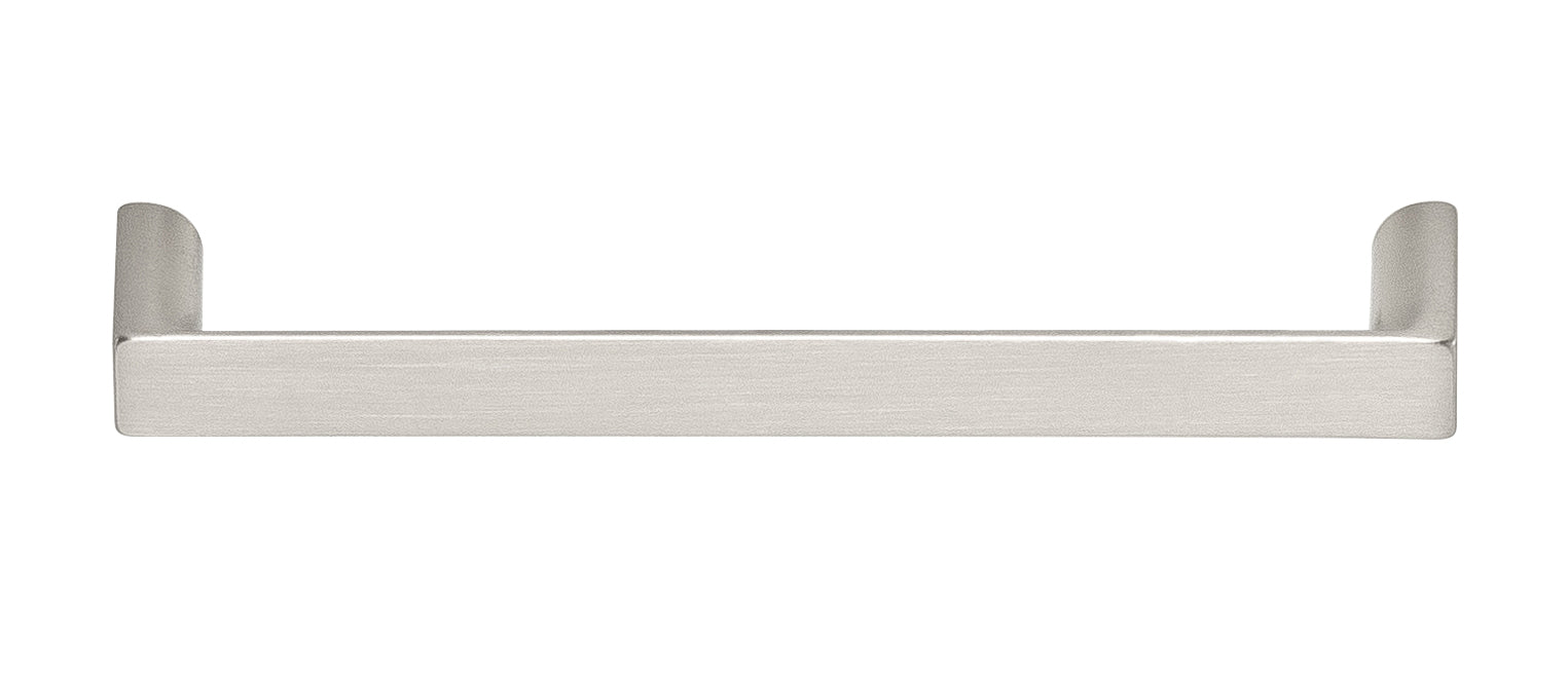 Modernt och stilrent handtag med rostfri look. Handtagets skruvavstånd är 128 mm.