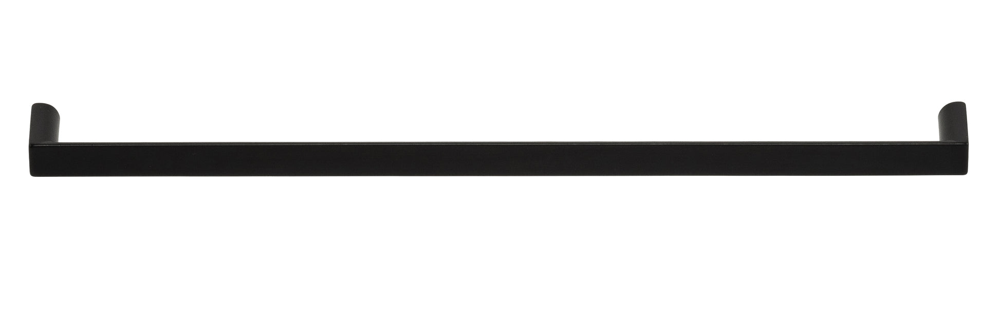 Modernt och stilrent svart handtag. Handtagets skruvavstånd är 288 mm.