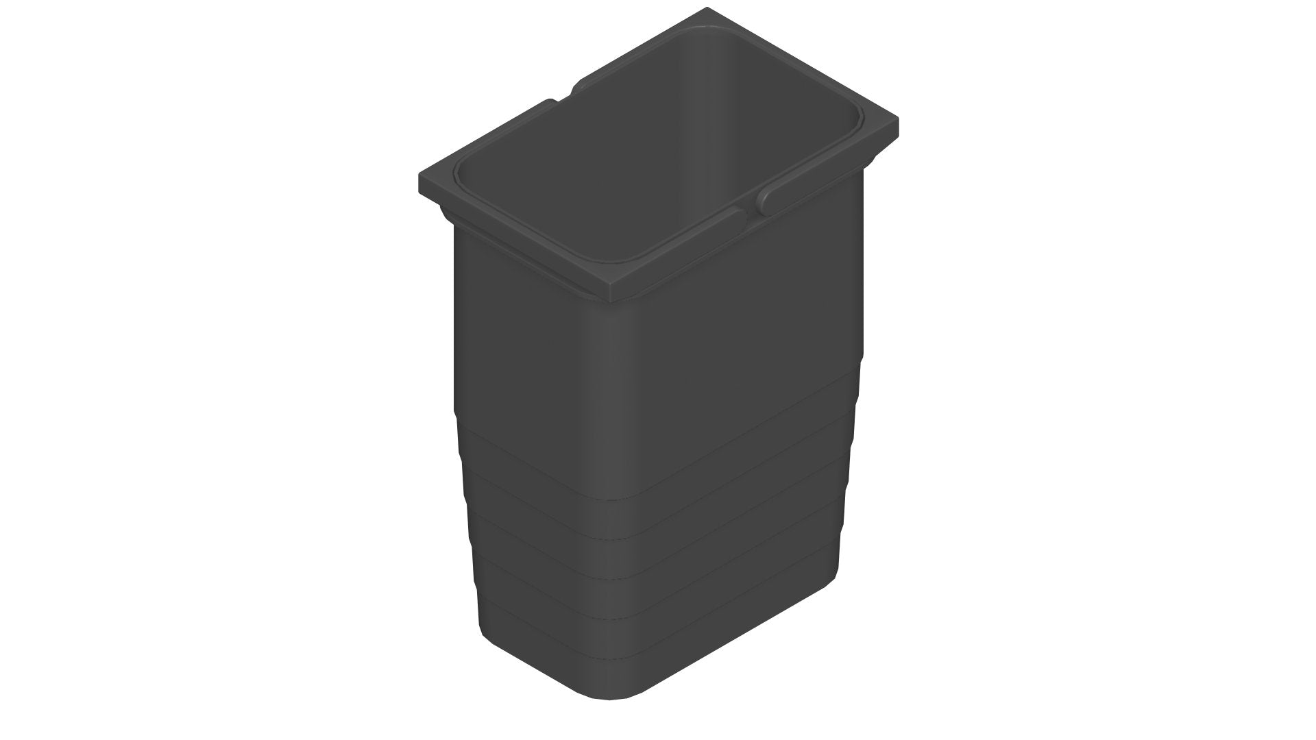 Avfallskärl till återvinningsskåp. Avfallskärlen är tillverkad av återvinningsbar formsprutad plast som är lätt att rengöra.